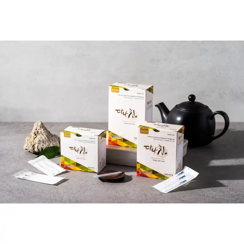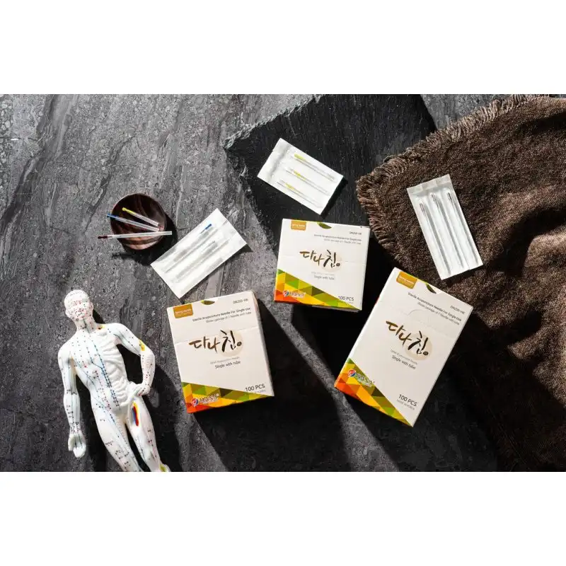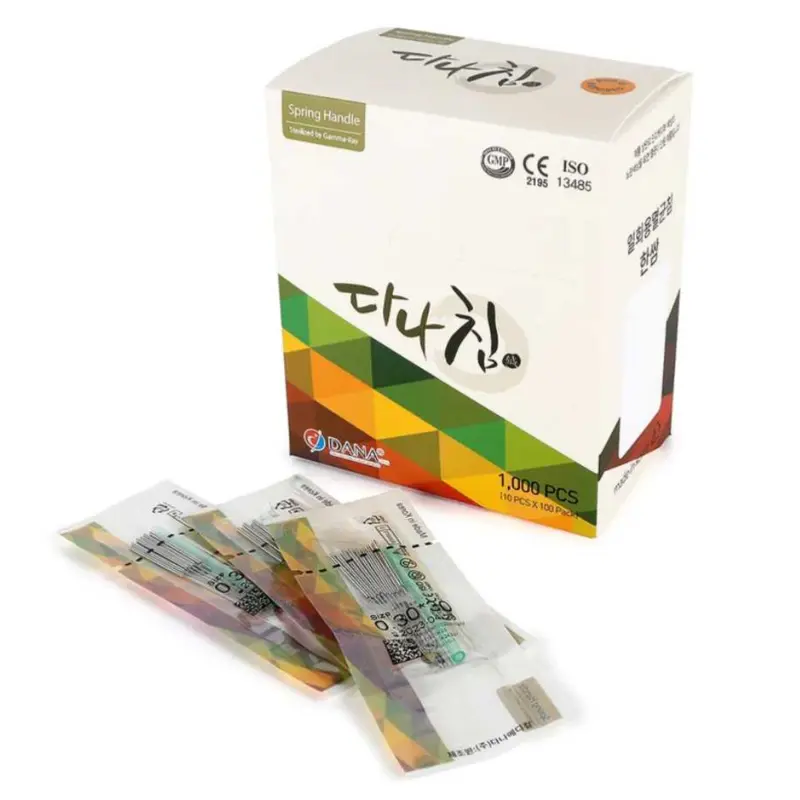 Svaka igla sastoji se od tijela, korejske čelične ručke u obliku opruge namotane na iglu koja olakšava uvođenje igle u tijelo pacijenta.