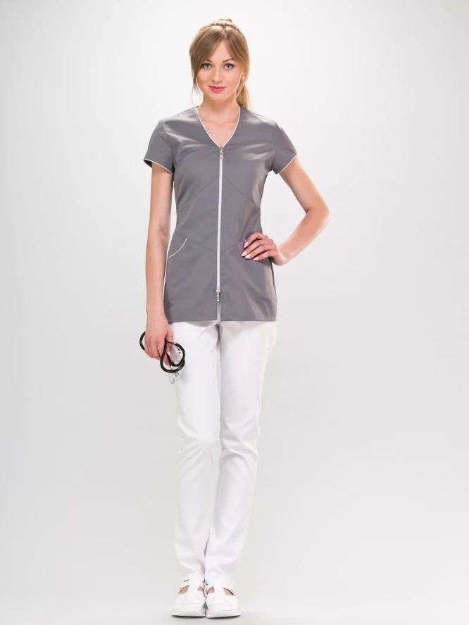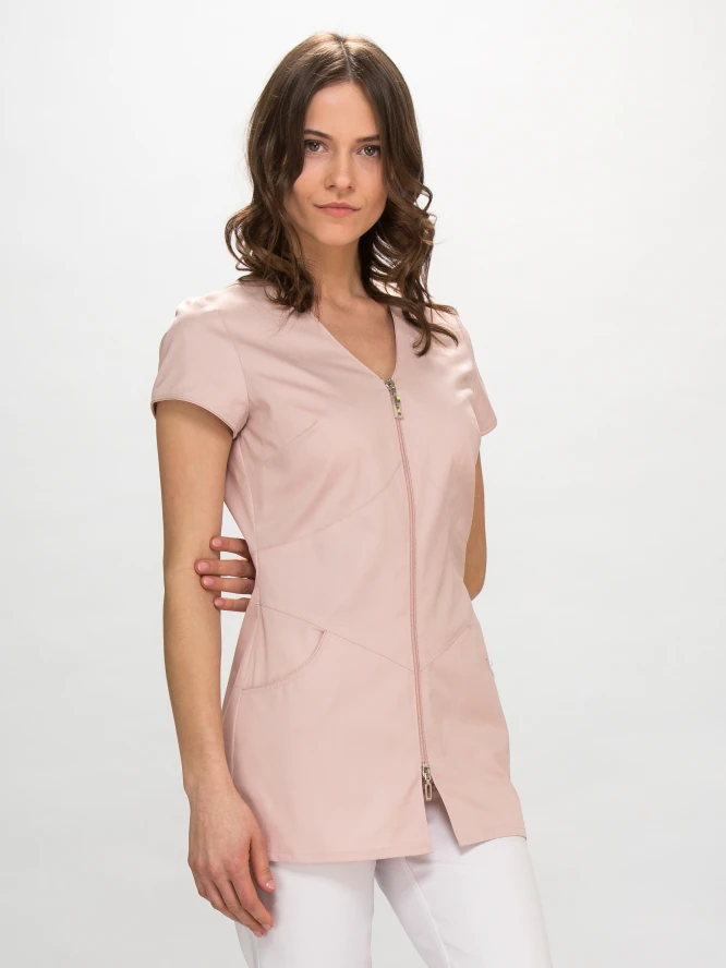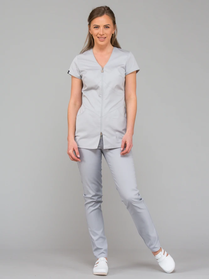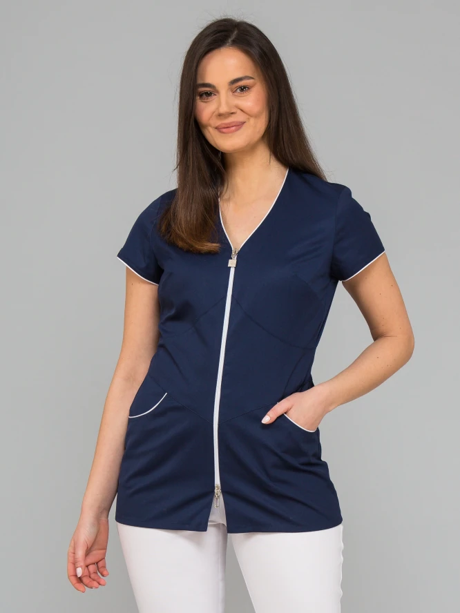 Ova medicinska bluza spaja eleganciju i funkcionalnost, čineći je idealnim izborom za profesionalce koji traže vrhunski stil i udobnost. Dolazi s kratkim ili 3/4 rukavima, pružajući vam udobnost i slobodu pokreta tijekom radnog dana.